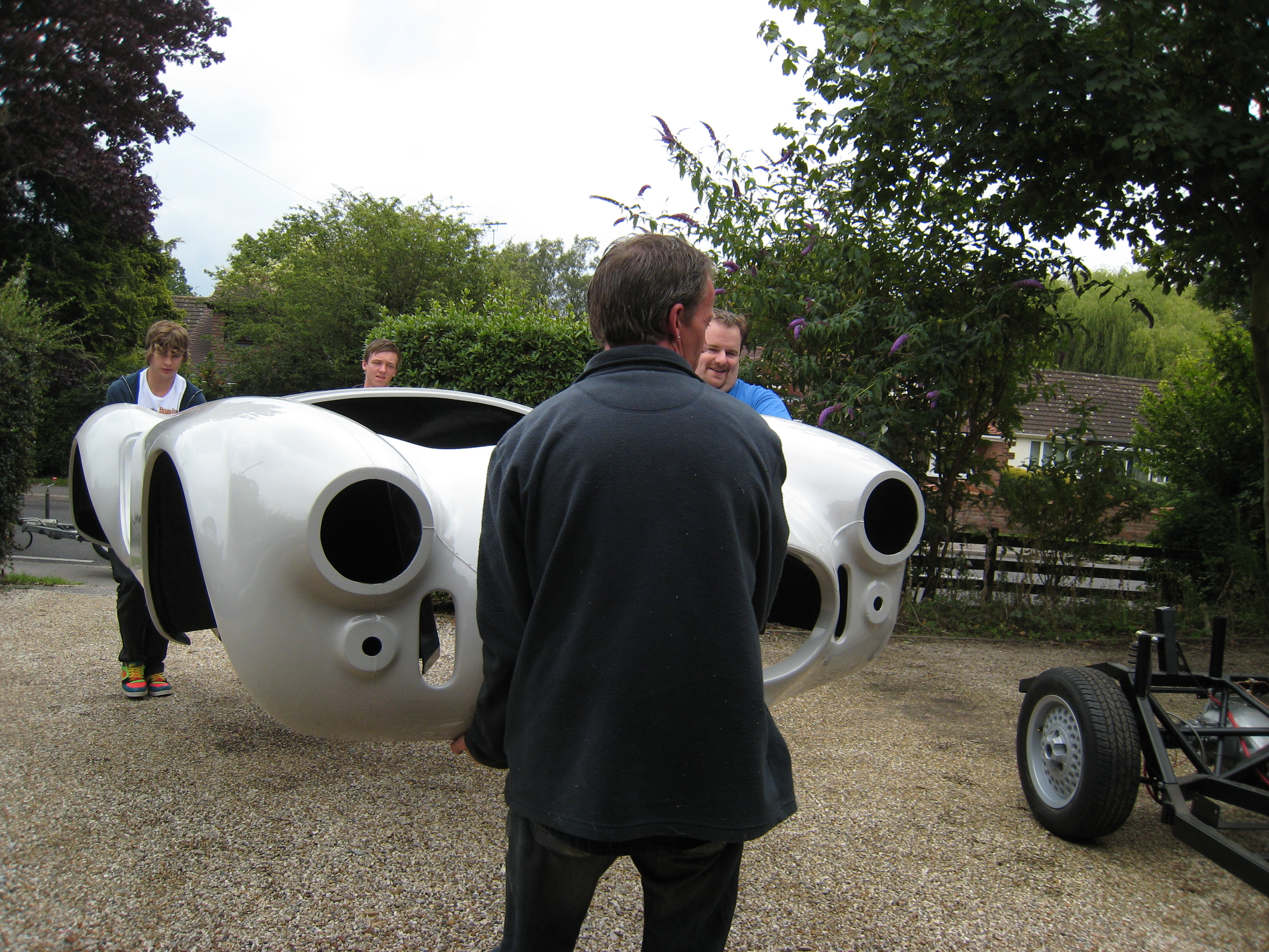 The body arrived from Dax on Thursday 21st July 2011. As can be seen from the pictures below the unloaded process took 4 of us to unload and place straight onto the chassis, as this is the best place to store the body.